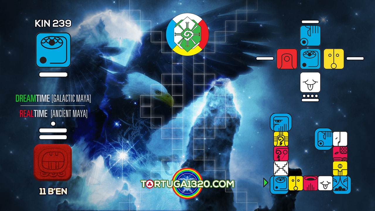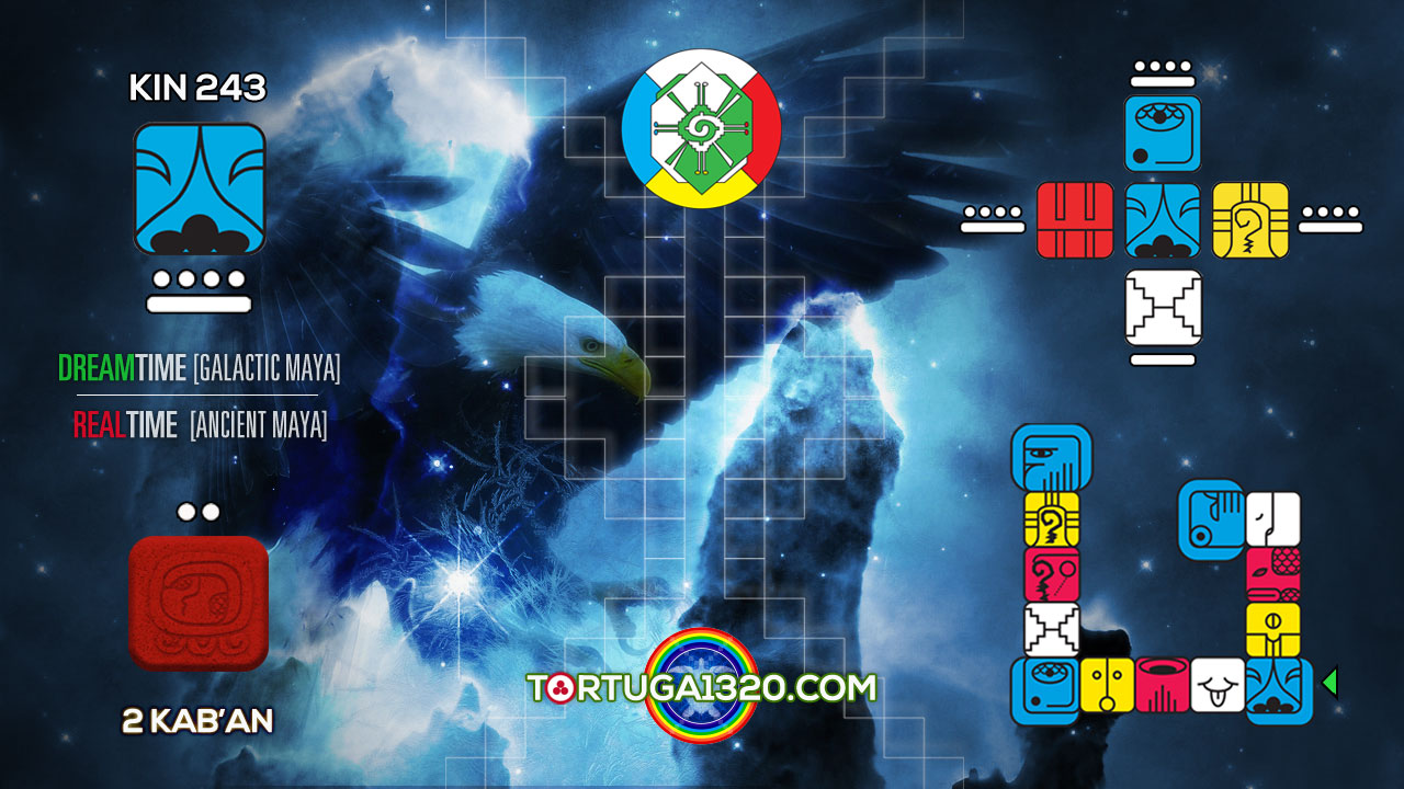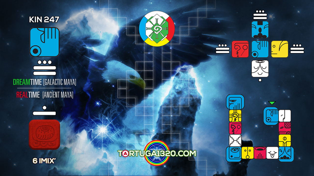 Down below, the Original Affirmations and Codes of the 13-day Blue Eagle Wavespell by Valum Votan and Bolon Ik, the authors in Eternity. Also, find the Galactic Maya Analysis and Tzolkin Numerology by Tortuga 13:20 at the end of this wavespell. In Lak’ech.
