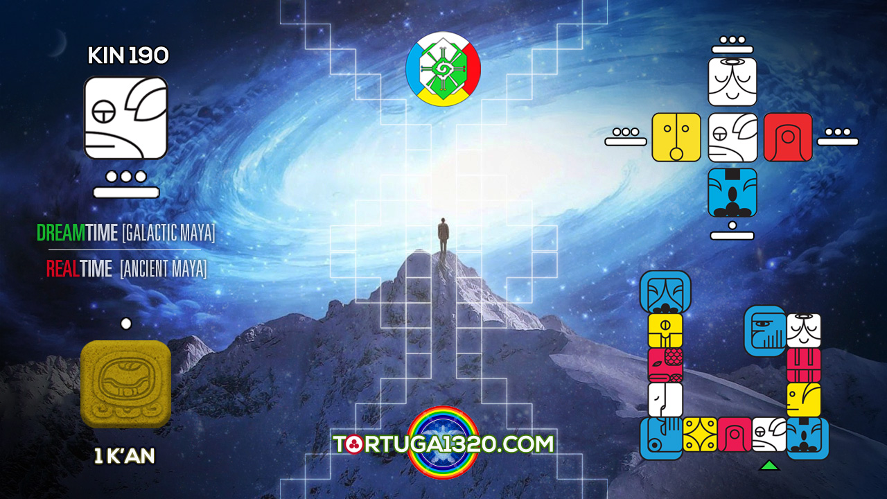 Thus, the codes from the first day of the 31s anniversary of the Harmonic Convergence are sustaining a divine confirmation from the Maya RealTime to the Galactic Maya DreamTime. A Divine Transmission through 1 K’an (Kin 144), the seal of the mythic founder of the Palenque Dynasty which is synchronising with Kin 190 Galactic Love (Pacal Votan in the DreamTime) and Day 22 of the year which refers to the deity of Bolon Ik or Quetzalcoatl. It also confirms the activation of the Telektonon Prophecy in the DreamTime by José and Lloydine in the Year of the Magnetic Seed, Kin 144.