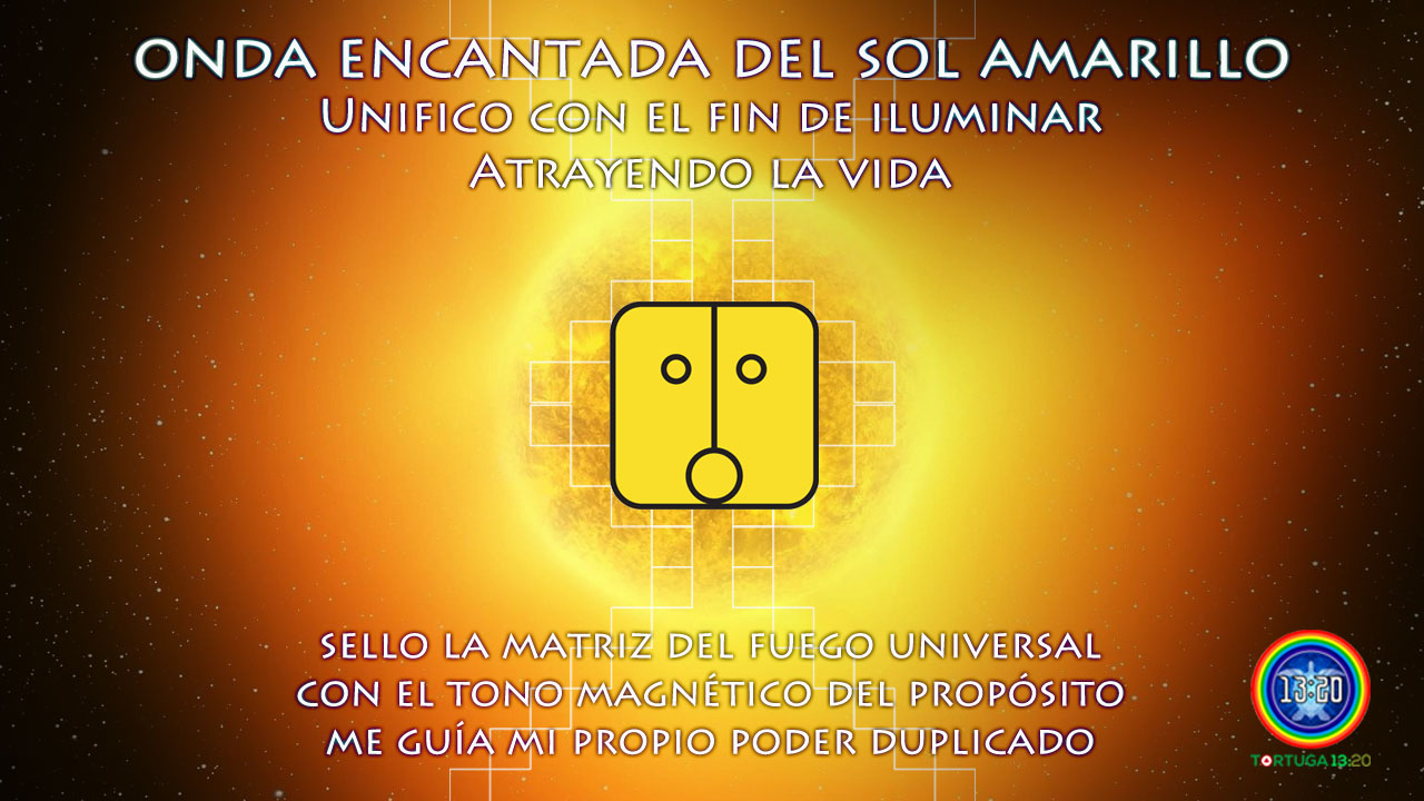 La Onda Encantada del Sol Amarillo es la cuarta onda del Viaje del Encantamiento del Sueño (Dreamspell), además de ser la cuarta y última del Castillo Rojo Este del Girar, el cual es el primer castillo de la Cuenta Dreamspell. El Castillo Rojo Este representa la Corte del Nacimiento y cubre las primeras 4 Ondas Encantadas del Tzolkin (Dragón Rojo, Mago Blanco, Mano Azul, Sol Amarillo) = 4×13 = 52 Días x 5 castillos = 260 días del Tzolkin. El Castillo Rojo va desde el Kin 1 al Kin 52. A través del Girar los kines planetarios manifiestan el Poder de Entrada!