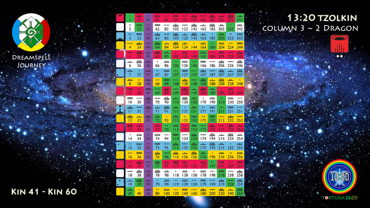 – Tzolkin: Día 41. Columna 3 del Dragón Lunar.