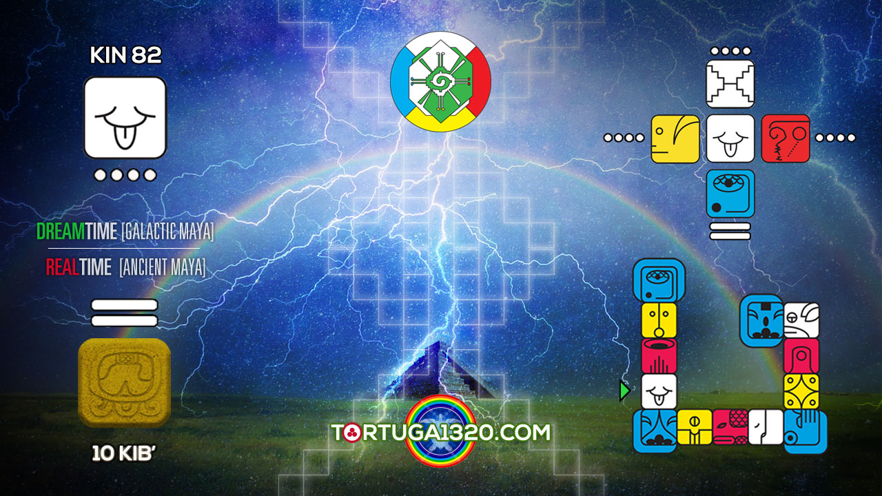 - Kin 82 (Viento Auto-Existente). Este Kin es el poder combinado de los Arquetipos Gemelos Primordiales del Telektonon: Pakal Votan Kin 60 + Bolon Ik Kin 22 = Kin 82 (Ver el Evangelio Telektonon de Pakal Votan y Bolon Ik). Ambos arquetipos multidimensionales están representados por Valum Votan y Bolon Ik en el Tiempo del Sueño Maya Galáctico y por los soberanos maya Rey Pakal y Reina Tz’akbu en el Tiempo Real Maya Ancestral. Todos ellos actuaron en representación de Pakal Votan y Bolon Ik, e inscribieron la Profecía del Telektonon a través de sus vidas en la tierra.