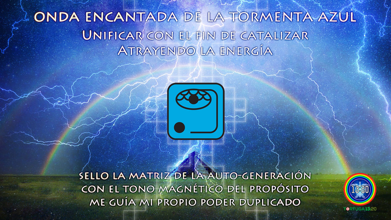 Precisamente, en la trascreación del Tzolkin que es el Dreamspell, la Tormenta es la catalizadora de la transformación y también la fuerza energética que manifiesta la Auto-Generación con el fin de lograr el nuevo comienzo. La Tormenta Azul nos invita a Dejar Ir los viejos preceptos y a explorar los nuevos con el fin de lograr nuestro propósito de transformación en la tierra y así alcanzar la Conciencia Superior.