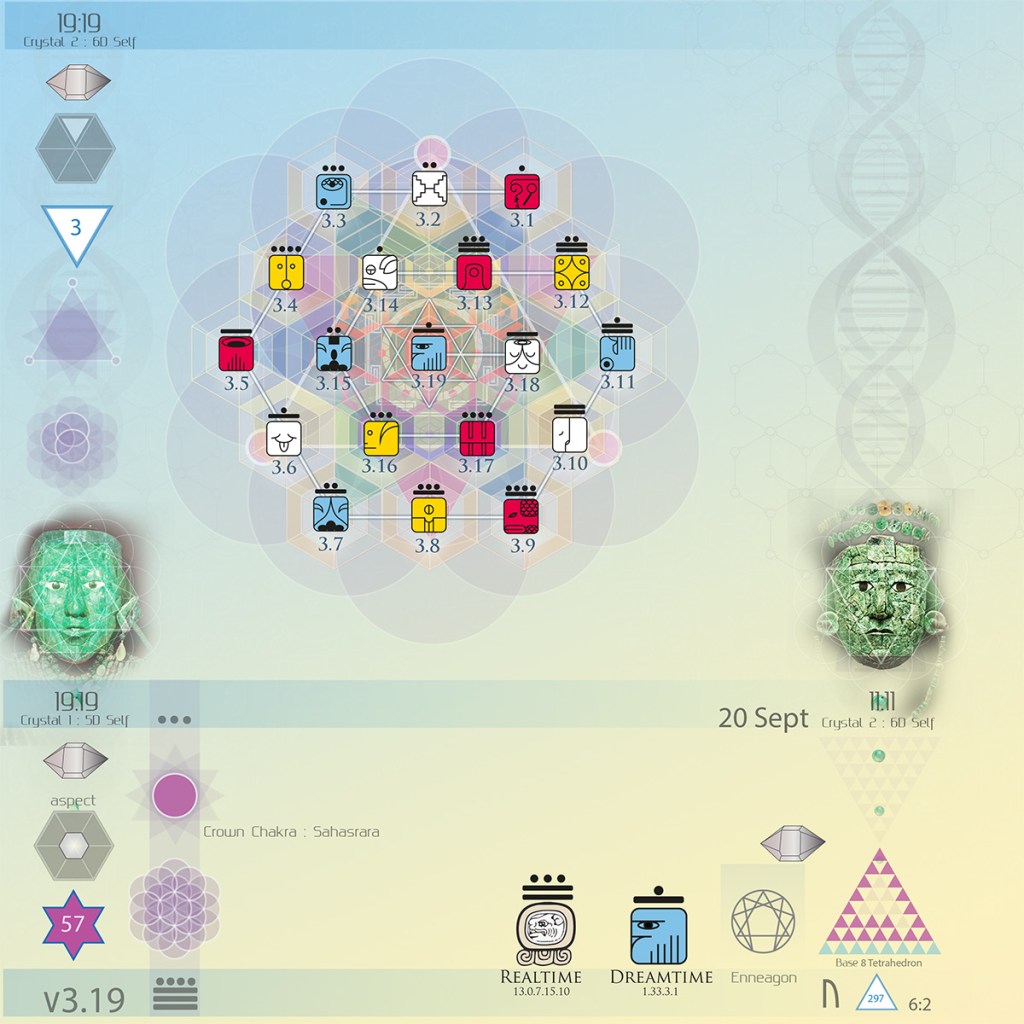 The Realtime Dreamtime Crystal Codex is the merging of the Realtime (Ancestral Long Count) Tzolkin and Dreamtime (Dreamspell) Tzolkin counts inside the Solar Calendrical container of the 19:19 Crystal Matrix. We have every reason to believe it is a match made in Heaven. The codex intrinsically integrates these counts into the Crystal Meditation. It also interfaces with the Telektonon Prophecy and should be considered an annex, or an additional chapter to these much celebrated publications.