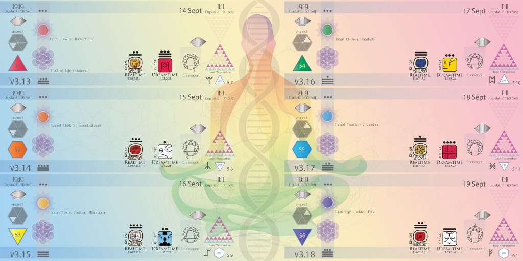 The 19:19 Crystal Matrix is the visionary product of the Dimensional Shift 2013 – a Sacred Gift telepathically transmitted from the Pakal and Tz’akbu, to the New Earth Wizards of today. It is a simple practice based upon the sacred harmonics of the double terminated crystal. Through the multidimensional lens of the 19:19 Crystal Matrix the fourth dimensional codes of the Tzolkin induce a Rainbow of Timelessness.