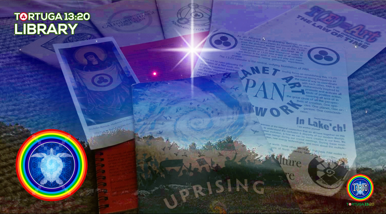 Abstract by Historical Tortuga’s website: “One of the original texts describing the origin, reasons and structure for the World Thirteen Moon Calendar Change Peace Movement and the Planet Art Network (PAN). The guide walks the reader through the current social and political problems of human culture and the biosphere, and provides solutions in the form of new biospherically conscious managing structures like the PAN and the PCC (Planetary Calendar Councils). Provided as well are the original schedules for planetary reorganization and social reform through the timing frequencies of the Thirteen Moon Calendar and the Tzolkin. This guide is an excellent complement to the Galactic Culture Master Plan.”